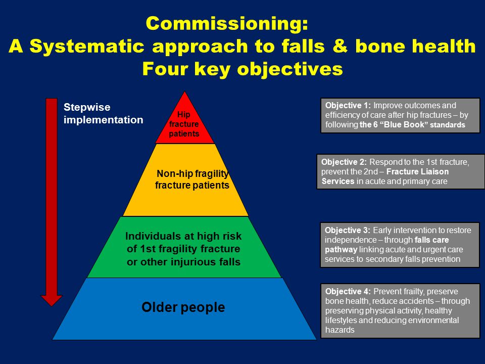 A fragility fracture is a major risk factor for further fractures, and healthcare systems are now beginning to recognise the benefits of secondary fracture prevention. Despite this, less than 50% of patients receive effective secondary fracture prevention after a fragility fracture. This has led to national and international initiatives to improve clinical services by implementing fracture liaison services (FLSs).
