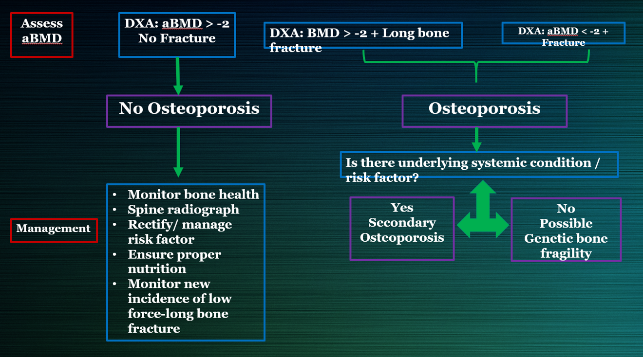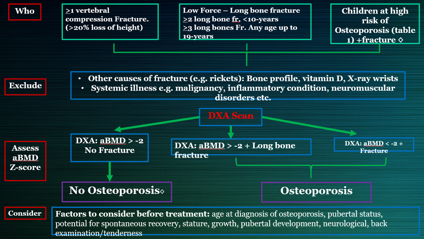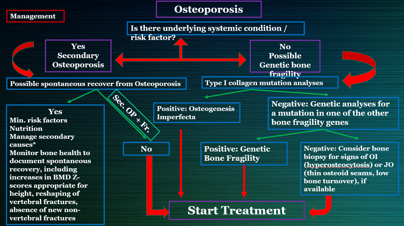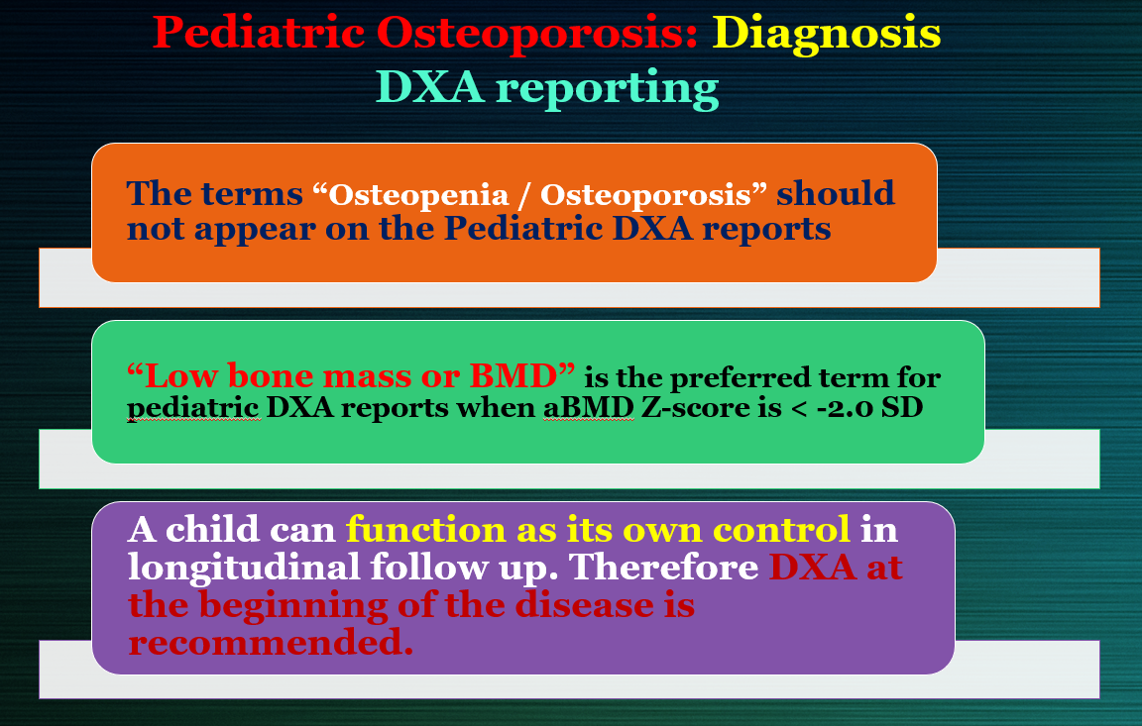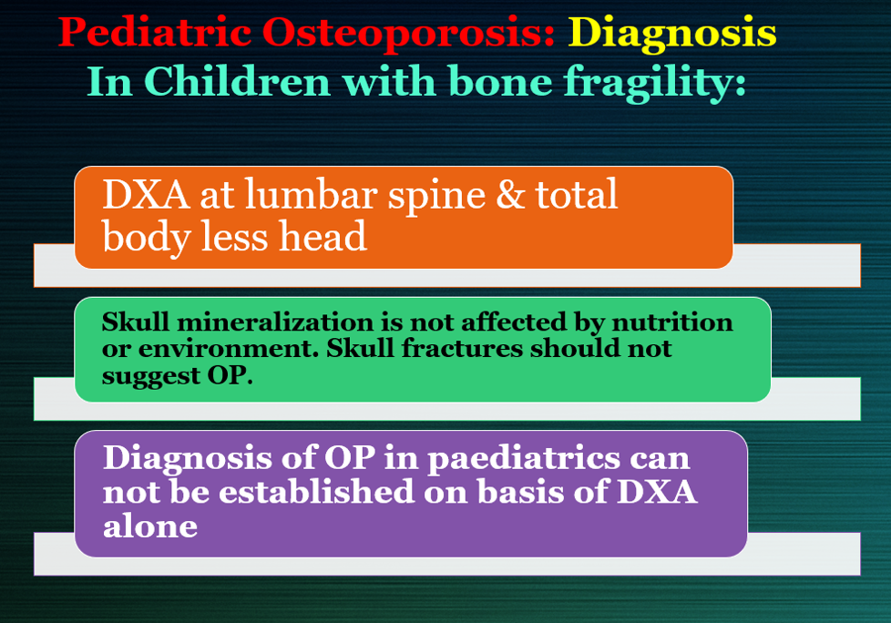 Establishing a more individualized, goal-directed approach to managing osteoporosis amongst children was endorsed by the Egyptian Academy of bone health, in its most recent published recommendations, as it may foster better drug therapy selection, improve patient follow-up, and anticipate use of new treatments.